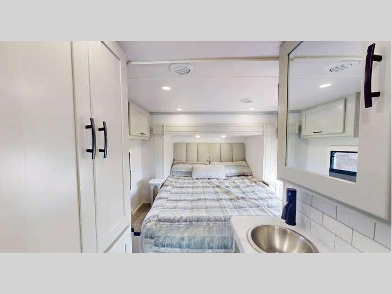 Each model has an extensive list of upgraded, standard features with contemporary interiors and functional living spaces. You will be able to enjoy life on the road for years to come thanks to the durable composite exterior fiberglass with no exterior wood, plus a crowned, one-piece fiberglass roof and aluminum-framed floor. The automatic, 4-point leveling jacks allow set up to be even easier, and there is a quad-view camera system to maneuver in and out of the campground like a pro!