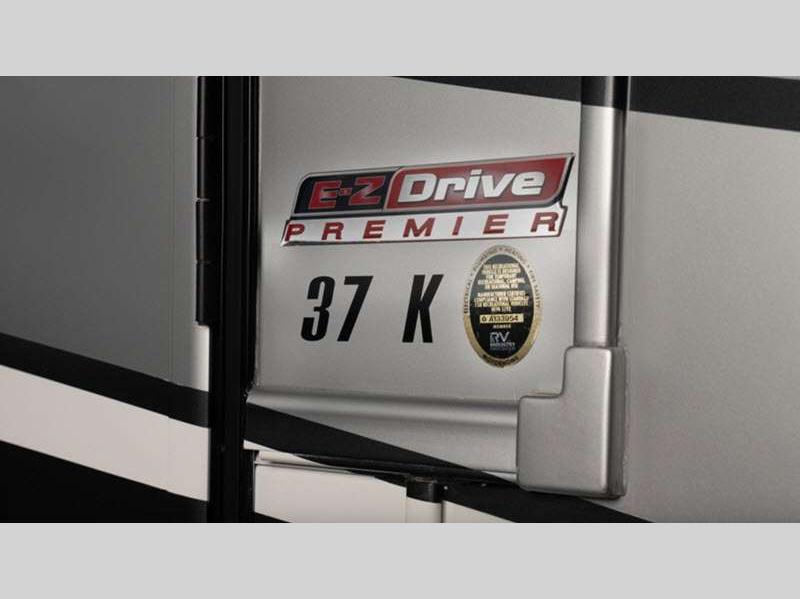 - E-Z Drive™ Premier; One-piece, seamless fiberglass front & rear caps; Automotive-bonded panoramic window in front cap w/ power shade; Lippert™ 4000 series dual-pane frameless bonded windows; (2) 15,000 BTU A/C units w/ heat pump on main A/C; Electric patio awning w/ LED lights; 2,000W pure sine wave inverter; Power cord reel w/ 50-amp service; Sony® infotainment center w/ Apple CarPlay® & Android Auto™; Backup & side-view cameras; Residential refrigerator; Residential-size convection microwave