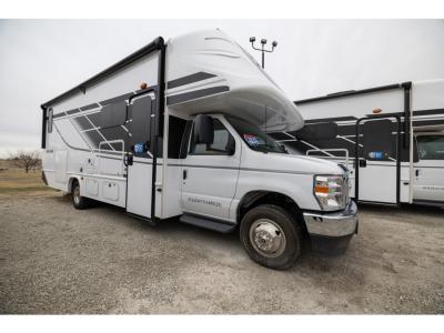 Each model sits on an E-450 Ford Chassis with a Ford 7.3L V8 engine to power your adventures both near and far. The Vacu-Bond floors, walls and ceilings with a Powerlock System ll create a strong foundation to your coach, and the premium color gel high-gloss exterior is sure to turn heads as you travel across the state or country. Designer pleated shades, lino flooring, and kitchen backsplash will make your space feel more like home, while a 15,000 BTU A/C and 30,000 BTU furnace will keep you comfortable year around.