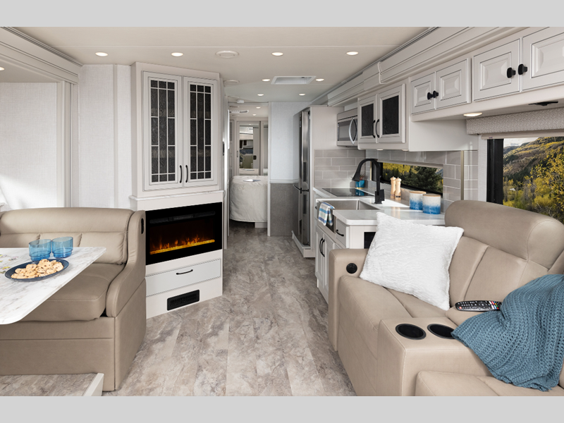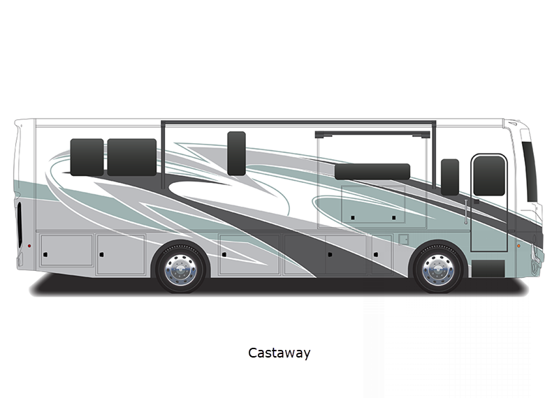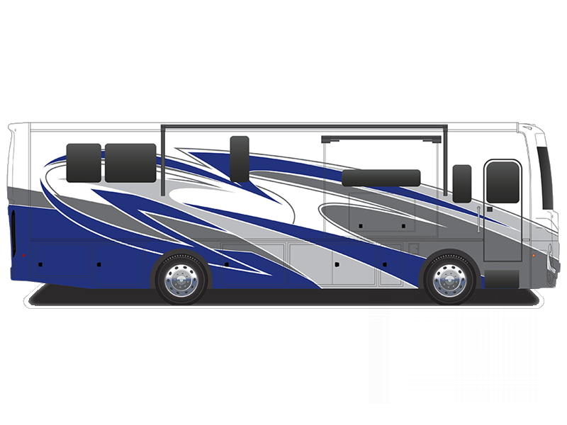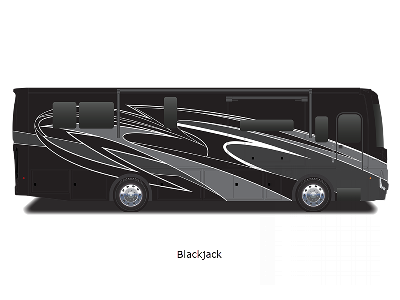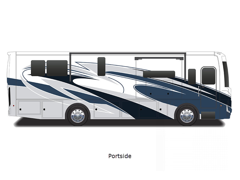 Sleeps 3 Slides 3 Length 38 ft 4 in Ext Width 8 ft 6 in Ext Height 12 ft 10 in Int Height 7 ft Interior Color Altair, Canvas, Metropolis Exterior Color Blackjack, Castaway, Portside, Riptide, Runway, Surge Hitch Weight 10000 lbs Fresh Water Capacity 96 gals Grey Water Capacity 65 gals Black Water Capacity 45 gals Fuel Type Diesel Engine Cummins B6.7 Chassis Freightliner XCR Horsepower 360 hp Fuel Capacity 100 gals Wheelbase 242 in Available Beds King Torque 700 ft-lb Refrigerator Type Residential Convection Cooking Yes Cooktop Burners 2 Shower Size 38" x 30" Axle Weight Front 12600 lbs Axle Weight Rear 21000 lbs Water Heater Type AquaHot 400D Basement Storage 190 cu. ft. TV Info LR LED TV, BR LED TV, Exterior LED TV Awning Info 15' Washer/Dryer Available Yes Gross Combined Weight 43600 lbs Shower Type Shower w/Seat Similar Floorplans