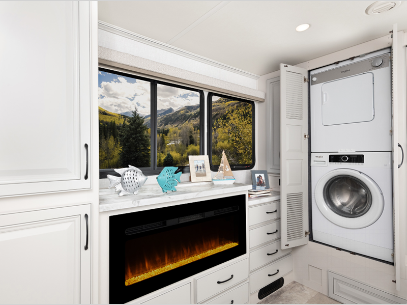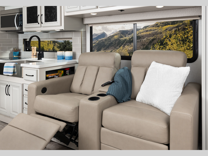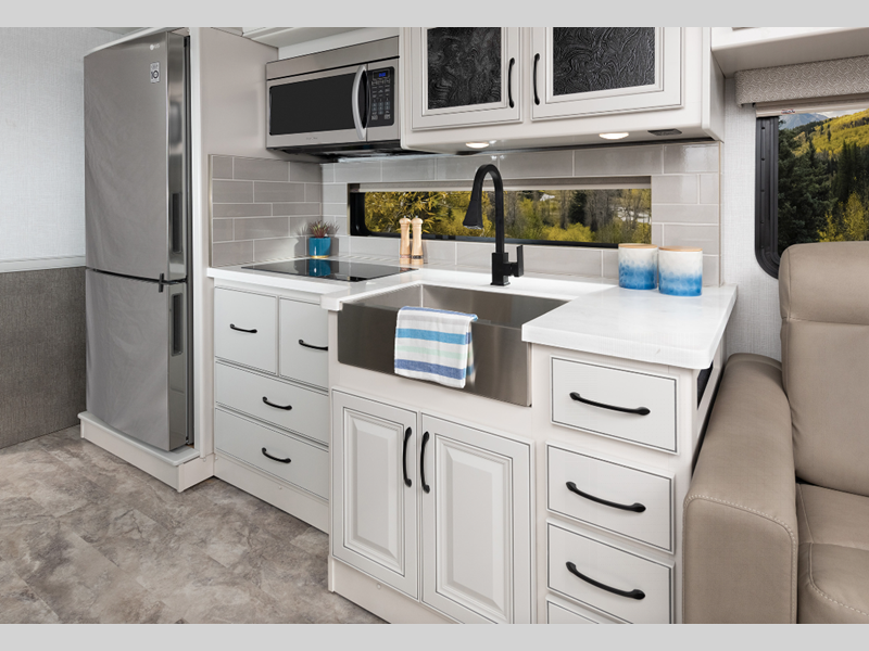 The motorhomes feature the XCE Chassis, V-series suspension system, and V-ride technology, ensuring a smooth ride and exceptional handling. The tire pressure monitoring system provides added safety and peace of mind. Plus, staying connected on the go has never been easier with our WiFi Ranger Sky Pro 4, featuring LTE, a 256-watt solar panel, and a cell booster that will allow you to enjoy fast and reliable internet access wherever your adventures take you.