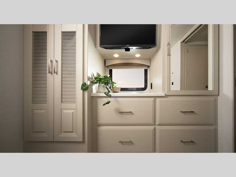 Experience a super smooth ride with the JRide Premium package built on these Jayco Seneca Prestige Super C diesel motorhomes! It has an advanced driving and handling system with front and rear suspension for the ultimate diesel-powered driving experience.