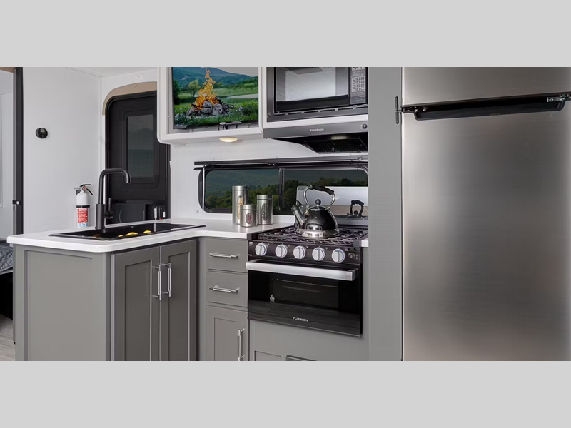 Sleeps 3 Slides 1 Length 22 ft 11 in Ext Height 10 ft 8 in Interior Color Tranquil Timber Hitch Weight 560 lbs Dry Weight 4337 lbs Cargo Capacity 2163 lbs Fresh Water Capacity 37 gals Grey Water Capacity 60 gals Black Water Capacity 30 gals Furnace BTU 30000 btu Available Beds Queen Refrigerator Type 12V Refrigerator Size 8 cu ft Cooktop Burners 2 Number of Awnings 1 LP Tank Capacity 20 lbs Water Heater Type Tankless AC BTU 13500 btu Axle Count 2 Number of LP Tanks 2 Shower Type Standard Similar Floorplans