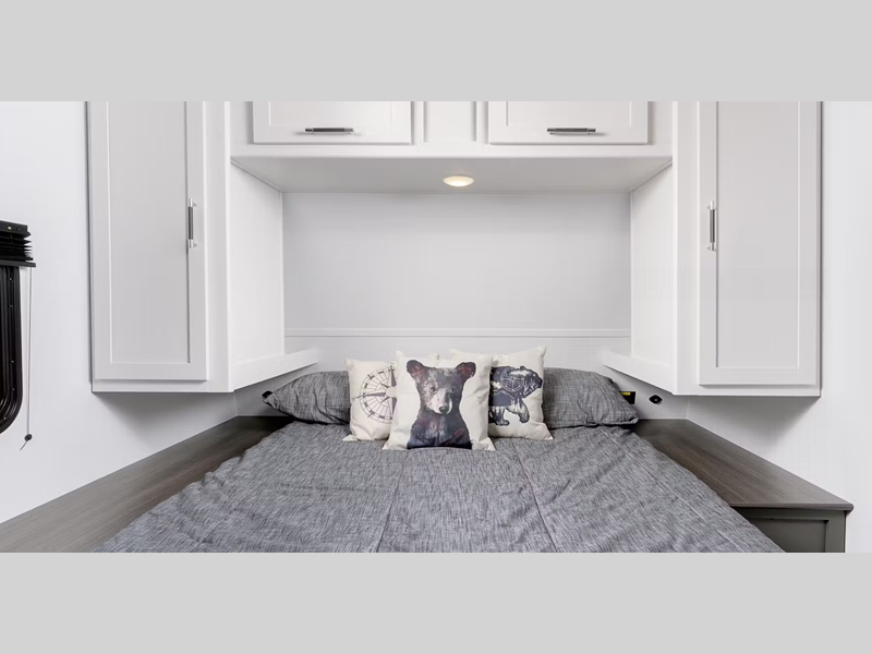 Sleeps 8 Slides 1 Length 32 ft 9 in Ext Height 10 ft 11 in Interior Color Tranquil Timber Hitch Weight 830 lbs Dry Weight 6058 lbs Cargo Capacity 1742 lbs Fresh Water Capacity 37 gals Grey Water Capacity 60 gals Black Water Capacity 30 gals Tire Size ST225/75R15D Furnace BTU 30000 btu Number Of Bunks 2 Available Beds Queen Refrigerator Type 12V Refrigerator Size 8 cu ft Cooktop Burners 2 Number of Awnings 1 LP Tank Capacity 20 lbs Water Heater Type Tankless AC BTU 15000 btu Number of LP Tanks 2 Shower Type Standard Similar Floorplans