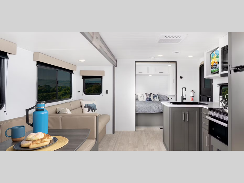 Sleeps 3 Slides 1 Length 22 ft 4 in Ext Height 10 ft 9 in Interior Color Tranquil Timber Fresh Water Capacity 45 gals Grey Water Capacity 34 gals Black Water Capacity 34 gals Tire Size ST205/75R14D Furnace BTU 30000 btu Available Beds Queen Refrigerator Type 12V Refrigerator Size 8 cu ft Cooktop Burners 2 Number of Awnings 1 LP Tank Capacity 20 lbs Water Heater Type Tankless AC BTU 13500 btu Awning Info 14' Axle Count 1 Number of LP Tanks 2 Shower Type Standard Similar Floorplans