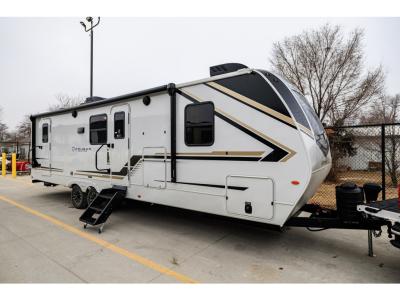Sleeps 9 Slides 1 Length 32 ft 11 in Ext Height 11 ft 5 in Interior Color Driftwood Hitch Weight 965 lbs Dry Weight 7240 lbs Cargo Capacity 2510 lbs Fresh Water Capacity 54 gals Grey Water Capacity 60 gals Black Water Capacity 30 gals Tire Size ST225/75R15E Furnace BTU 30000 btu Number Of Bunks 2 Available Beds King Refrigerator Type 12V Refrigerator Size 10.4 cu ft Cooktop Burners 3 Number of Awnings 1 LP Tank Capacity 20 lbs Water Heater Type Girard Tankless On Demand AC BTU 15000 btu TV Info LR LED HDTV Awning Info 21' Electric with Gas Strut Arm Axle Count 2 Number of LP Tanks 2 Shower Type Standard Similar Travel Trailer Floorplans