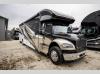 Each is built with aerodynamic fiberglass front and rear caps in two-pieces for easy replacement, a crowned fiberglass roof surface, and includes "Super Sandwich" floor construction with galvanized vapor barrier. The beautiful interior gives you luxury throughout with beautiful maple hardwood cabinets with soft closing drawers topped with solid surface countertops, stainless steel appliances, a French door refrigerator, and Ultra-Soft furniture. And the entertainment and electrical systems are something to boast about!