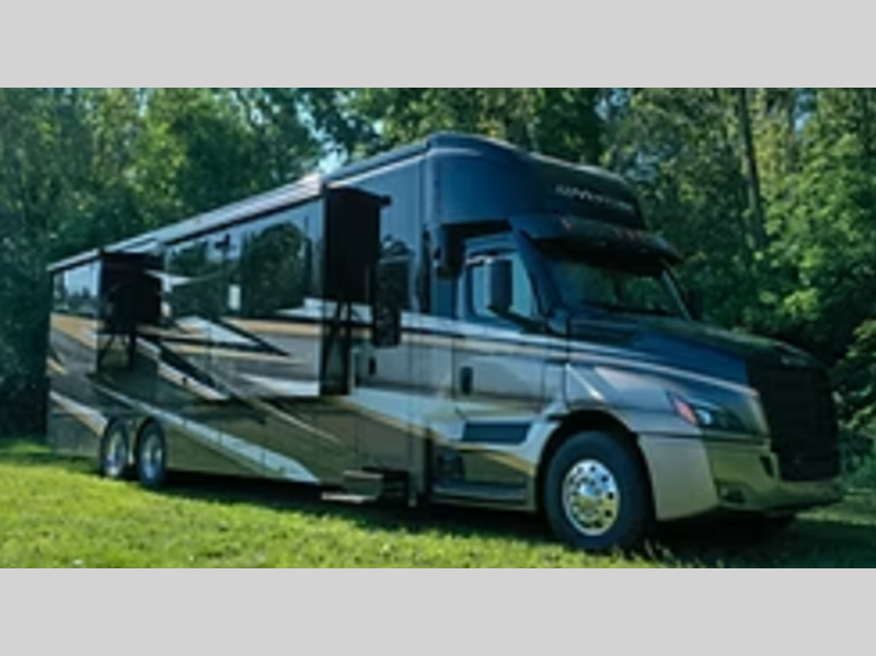 Sleeps 5 Slides 3 Length 45 ft Ext Width 8 ft 4 in Ext Height 13 ft 6 in Exterior Color Deluxe, Momentum, Ghost, Solid Color Paint Package Options Hitch Weight 30000 lbs Fresh Water Capacity 150 gals Grey Water Capacity 72 gals Black Water Capacity 72 gals Generator 12.5W Onan Diesel Fuel Type Diesel Engine Detroit DD16 15.6L Chassis Freightliner Cascadia 126 Horsepower 600 hp Fuel Capacity 120 gals Number Of Bunks 2 Available Beds Mini King Torque 1850 ft-lb Refrigerator Type GE Cafe Convection Cooking Yes Cooktop Burners 2 Shower Size 36" x 47" Water Heater Type Oasis NE Hydronic AC BTU 45000 btu TV Info LED Smart TV; LR 50", BR 43", Ext. 43" Washer/Dryer Available Yes Shower Type Standard Electrical Service 50 amp Solar Wattage 1200 watts Similar Floorplans