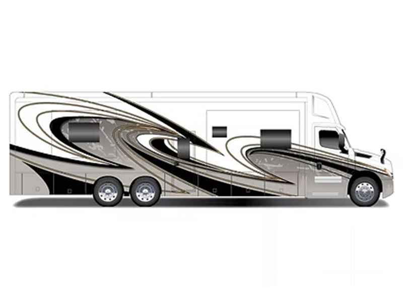 Sleeps 4 Slides 4 Length 45 ft Ext Width 8 ft 4 in Ext Height 13 ft 6 in Exterior Color Deluxe, Momentum, Ghost, Solid Color Paint Package Options Hitch Weight 30000 lbs GVWR 58000 lbs Dry Weight 46500 lbs Fresh Water Capacity 150 gals Grey Water Capacity 72 gals Black Water Capacity 72 gals Generator 12.5W Onan Diesel Fuel Type Diesel Engine Detroit DD16 15.6L Chassis Freightliner Cascadia 126 Horsepower 600 hp Fuel Capacity 120 gals Wheelbase 341 in Available Beds Mini King Torque 1850 ft-lb Refrigerator Type GE Cafe Convection Cooking Yes Cooktop Burners 2 Shower Size 36" x 47" Axle Weight Front 18000 lbs Axle Weight Rear 40000 lbs Water Heater Type Oasis NE Hydronic AC BTU 45000 btu TV Info LED Smart TV; LR 50", BR 43", Ext. 43" Washer/Dryer Available Yes Shower Type Standard Electrical Service 50 amp Solar Wattage 1200 watts Similar Floorplans