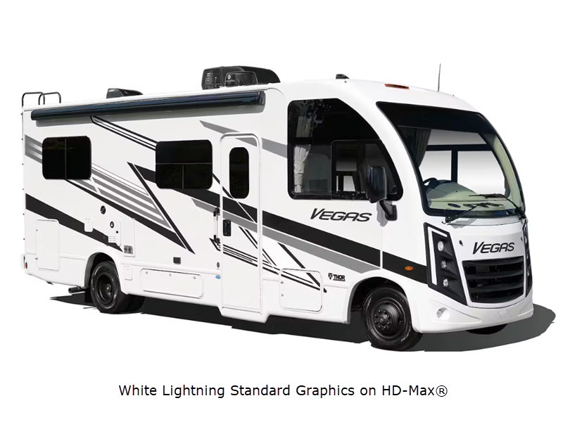 Upgrade your travel experience with the Vegas Class A gas motorhome from Thor Motor Coach! Since this coach sits on a Ford E-Series chassis with an 8,000 lb. hitch, you can confidently travel across the state or country!