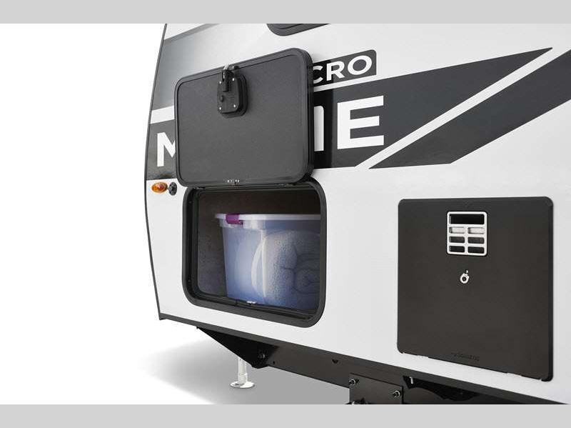 With each model you will enjoy spacious living quarters, full bath amenities, and plenty of exterior storage space. The all-in-one control panel will allow you to control your trailer's functions in one easy location, and the wireless phone charger is sure to come in handy. The Micro Minnie travel trailers are constructed with a durable NXG engineered frame, 1.5" FilonMax fiberglass sidewalls with Azdel composite backing, and a walkable roof decking with roof ladder for convenience. And you might even plan to go off-grid for a while with the 200-watt solar panel with side-mount solar prep!