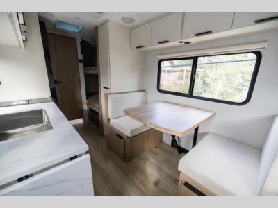 Pack your bags and load up the kids to head out on a great camping adventure as a family! There is a front 54" x 74" full-size bed for you and a set of rear corner bunk beds for the kids, plus they can bring a friend to sleep on the 32" x 74" booth dinette. You can prepare meals for the whole group with the three burner cooktop and the 10.3 cu. ft. 12V refrigerator, plus you can pop a bag of popcorn in the microwave for movie night with the Smart TV. And a private toilet and 24" x 36" shower next to the bunks and offers a great place to get ready for the day or bedtime.
