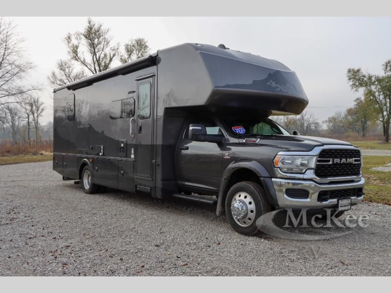 Each one of these Dynamax isata 5 Super C diesel motorhomes offer control, comfort, and stability thanks to the Ram 5500 SLT chassis with factory 4-wheel drive! They are powered by a Cummins 6.7L I6 turbo diesel engine and an AISIN HD 6-speed automatic transmission. Their construction consists of 2" aluminum-framed, laminated sidewalls with block foam insulation, composite exterior fiberglass, and a composite flooring substrate that is lightweight and moisture resistant. You will see their attention to detail everywhere you look including ambient lighting, premium cut and buffed paint finish, and a water filtration system for clean water where ever you go. They even have a single 190 watt solar panel with a 30 amp controller so you can go off the grid. Come check out your favorite model today!