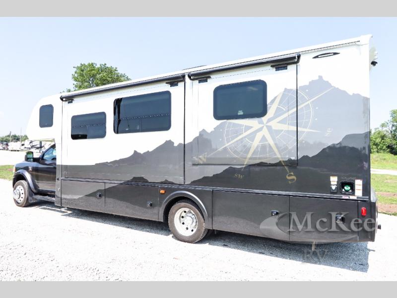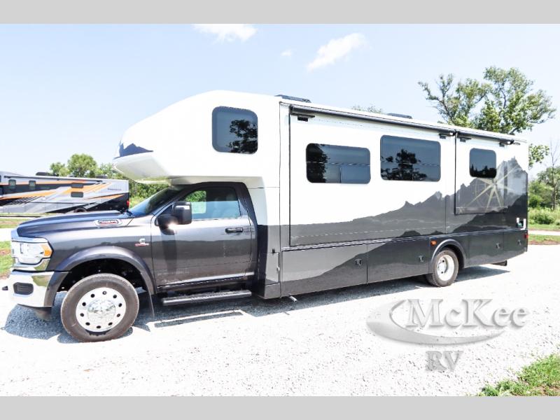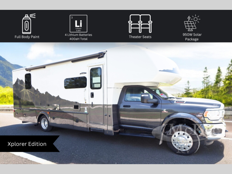 Each one of these Dynamax isata 5 Super C diesel motorhomes offer control, comfort, and stability thanks to the Ram 5500 SLT chassis with factory 4-wheel drive! They are powered by a Cummins 6.7L I6 turbo diesel engine and an AISIN HD 6-speed automatic transmission. Their construction consists of 2" aluminum-framed, laminated sidewalls with block foam insulation, composite exterior fiberglass, and a composite flooring substrate that is lightweight and moisture resistant. You will see their attention to detail everywhere you look including ambient lighting, premium cut and buffed paint finish, and a water filtration system for clean water where ever you go. They even have a single 190 watt solar panel with a 30 amp controller so you can go off the grid. Come check out your favorite model today!
