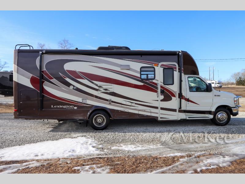Double Slide Lexington Class B+ Motor Home, Rear Queen Bed w/Nightstands Slide, Double Wardrobes, Drawers, Lav., Refrigerator, Single Galley Sink, Microwave, Flip-On Counter, Entertainment Center Above Cab, U-Dinette, Pantry, Toilet, Shower, Overhead Cabinets Throughout & Much More. Available Options May Include: TV Above Drawers.