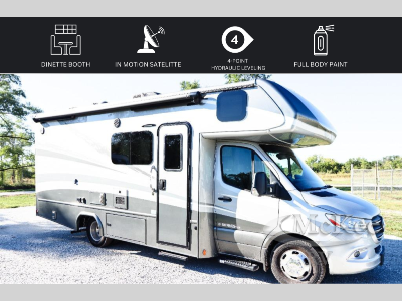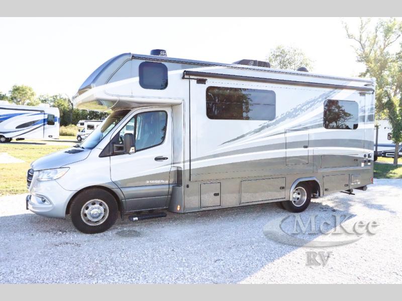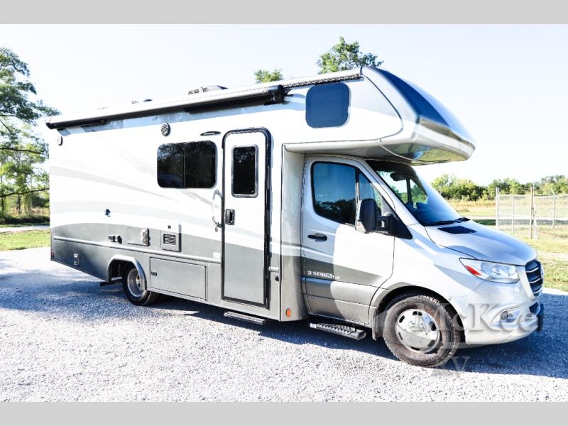 Each one of these Dynamax isata 3 Class C diesel motorhomes were designed to last for years of fun with composite exterior fiberglass with no exterior wood, aluminum-framed roof trusses, and composite flooring substrate. The 3.0L V6 turbo diesel engine is also fuel efficient and a Mercedes-Benz Sprinter chassis holds them together. There is an MBUX 10.25" infotainment system and a quad-view camera system that will let the driver navigate the open road like a pro, and the added safety features are sure to bring you peace of mind. Outside, you'll be wowed by the custom full-body paint package with front-end Diamond Shield paint protection, plus there are exterior speakers, an armless patio awning with LED lights, and seamless rotocast storage compartments for your gear! Each model also includes many interior comforts to make you feel right at home, like the premium vinyl flooring throughout, hardwood craftsman-style cabinetry, solid surface countertops with LED edge lighting and backsplash, and the list goes on!